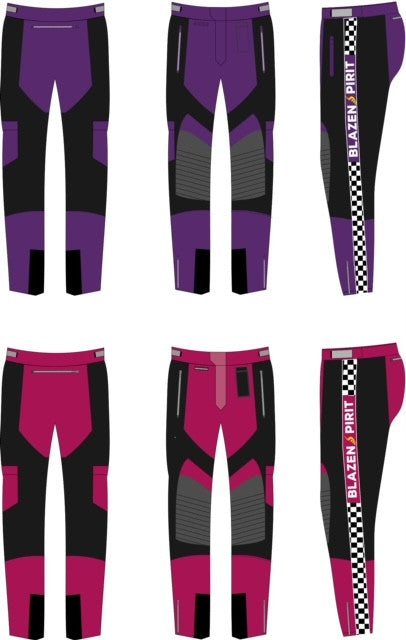 "Racer Fame" Riding pants, Cordura Textile Fabric in Dark Purple or Dark Pink All Seasons with CE2 Guards, removable quilted liner